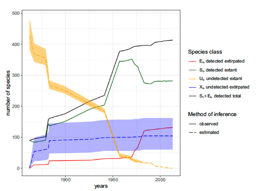 This paper is a culmination of many series of studies includin Singapore’s butterflies extinction project. Singapore has lost most of its tropical primary forest, yet it has an exceptionally detailed biodiversity record. Researchers compiled a database of Singapore’s biodiversity records and estimated extinction rates using statistical methods. The estimated overall extinction rate was 37%, which is half the rate estimated previously for Singapore. However, extinctions were more concentrated among larger, charismatic species. By 2100, Southeast Asia will have a landscape dominated by humans and will resemble a “tropical Europe” with approximately 80% of the original species surviving.